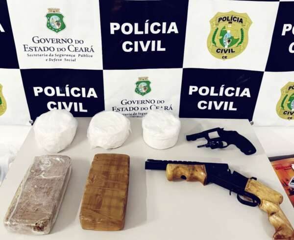 A Polícia Civil concluiu, na segunda-feira (8), uma operação no Crato que terminou com a detenção de um homem e a apreensão de diversos itens. Entre o que foi recolhido, estavam uma motocicleta, um celular, duas armas e uma grande quantidade de substâncias ilícitas.