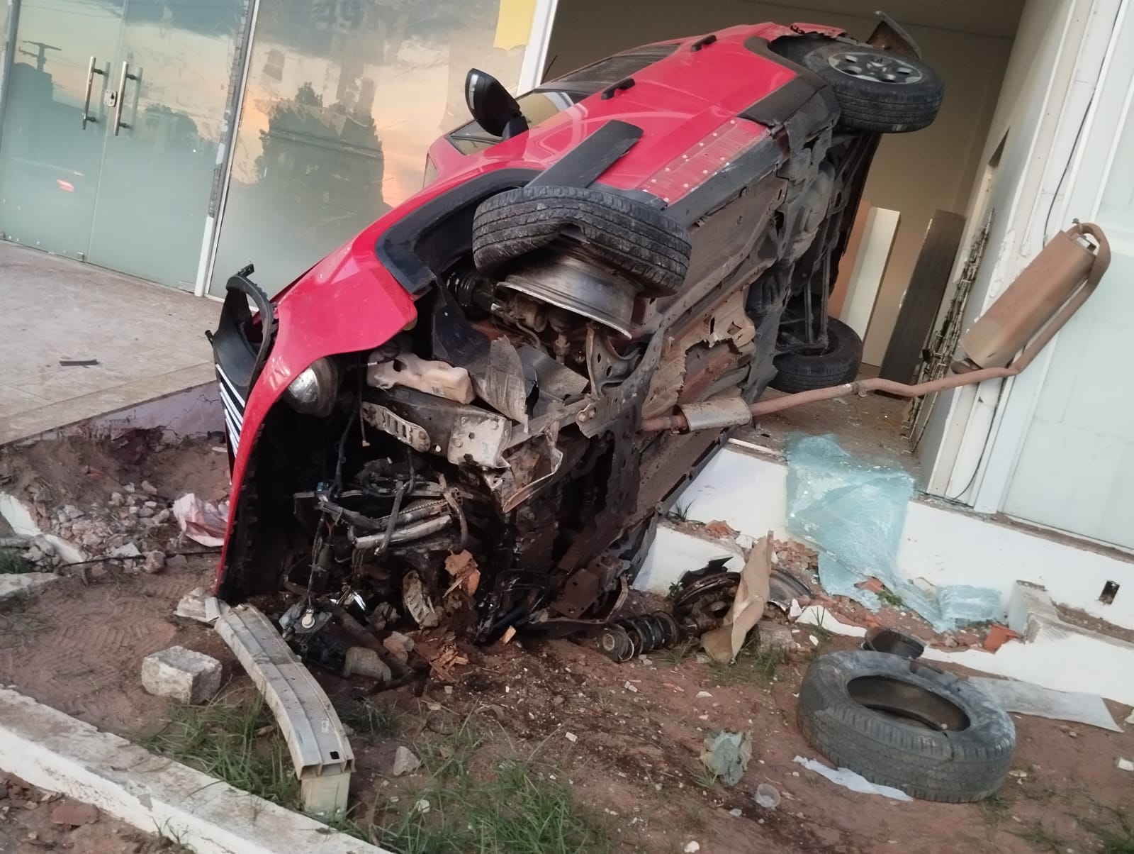 Segundo as informações apuradas no local, o jipe colidiu inicialmente com uma motocicleta. Em seguida, o veículo ainda atingiu um caminhão-cegonha que estava na via e, desgovernado, avançou em direção ao prédio da instituição de ensino. Apesar do susto, não houve registro de feridos dentro da escola.