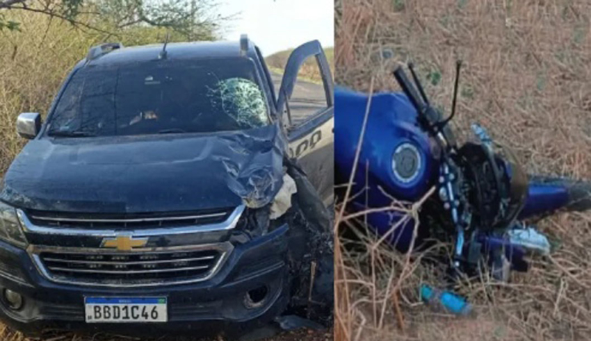 A caminhonete estaria sendo conduzida por Cícero Nascimento Quirino, de 46 anos, residente no município de Correntina, no estado da Bahia, conforme informações iniciais repassadas à Polícia Militar. De acordo com os levantamentos preliminares, o veículo trafegava no sentido contrário ao da motocicleta no momento do acidente.