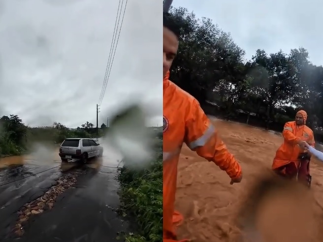 O primeiro chamado ocorreu às 7h20 e envolveu uma motorista que ficou com o veículo, um Fiat de placa KIZ-1412, em um trecho com acúmulo de água. Quando a equipe chegou, a condutora já estava fora do carro. Após avaliação das condições da via, os bombeiros verificaram que era possível fazer a retirada com segurança. A remoção foi realizada com apoio de um caminhoneiro que passava pelo local.