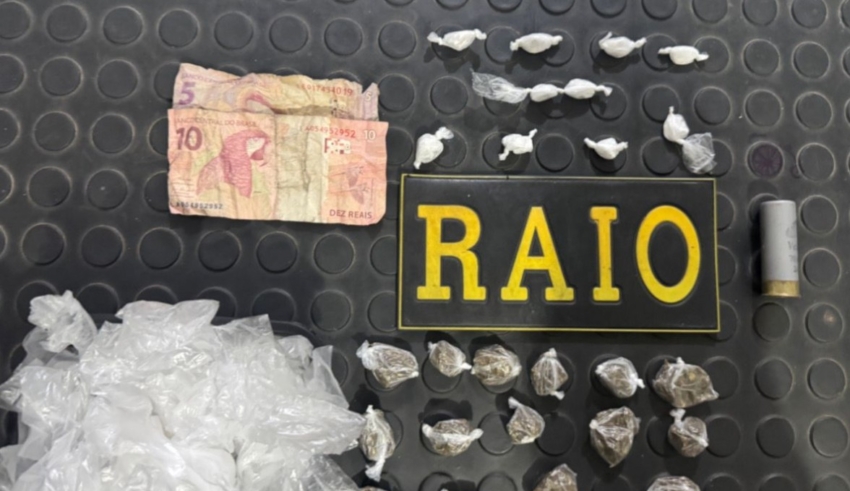 Em diligências posteriores, o segundo suspeito, de 13 anos, foi localizado e indicou a residência onde estavam guardadas substâncias entorpecentes. No local, os policiais apreenderam 18 gramas de maconha, 3 gramas de cocaína, embalagens utilizadas para fracionamento de drogas e uma munição calibre 12.