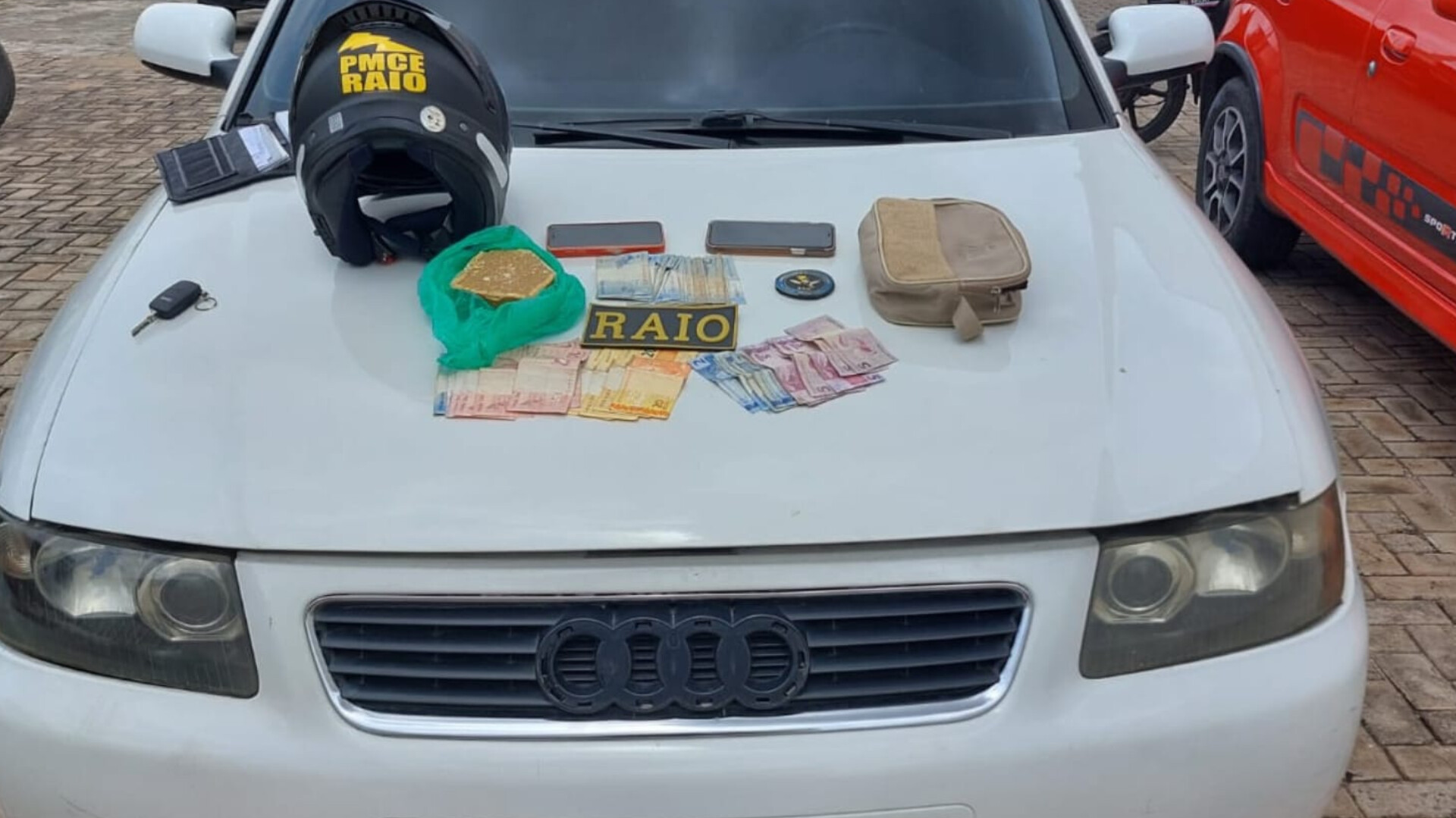 Diante da situação, a equipe realizou a abordagem e identificou os ocupantes como Igor dos Santos Mota Feitosa, de 28 anos, e Vicente Pereira Celestino, de 38 anos, ambos naturais de Barbalha. Na busca dentro do veículo, os policiais encontraram 506 gramas de crack, dois aparelhos celulares (um iPhone 12 Pro Max e um Samsung), além da quantia de R$ 285 em cédulas e R$ 6 em moedas.