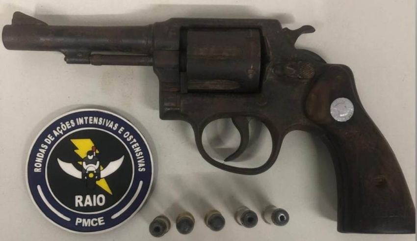 Uma equipe do CPRAIO apreendeu, na noite deste domingo (23), um revólver calibre .38 em uma residência localizada no Conjunto Padre Cícero, em Caririaçu. A ação ocorreu após a corporação receber uma denúncia relatando que um morador estaria mantendo uma arma de fogo dentro do imóvel.