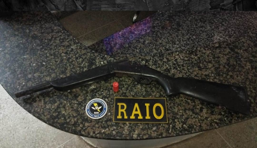 Foi realizada perseguição a pé, mas os indivíduos não foram localizados. No local, os agentes apreenderam uma espingarda CBC calibre 12, com número de série 311957, contendo uma munição intacta.