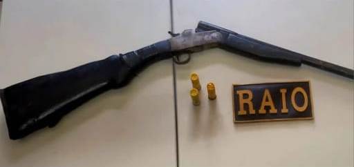 Ao verificarem o conteúdo, os policiais constataram que se tratava de uma espingarda calibre 20, de fabricação industrial marca Boito, sem numeração aparente, e três munições intactas da marca CBC. Foi realizada uma varredura na área, mas o suspeito não foi localizado.