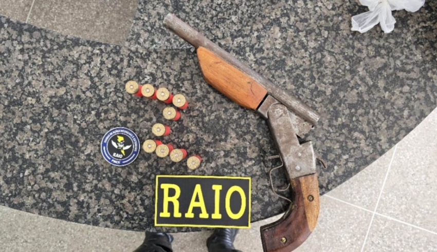 Na verificação feita em seguida, foi localizada uma espingarda calibre 12, apresentando sinais de desgaste e sem numeração aparente. Próximo à arma, os agentes encontraram dez cartuchos intactos do mesmo calibre, acondicionados em um saco plástico.