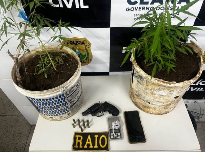 O Comando de Policiamento de Rondas e Ações Intensivas e Ostensivas (CPRAIO) prendeu, na noite desta sexta-feira (24), um homem de 43 anos por posse irregular de arma de fogo e cultivo de drogas no bairro Jardim Gonzaga, em Juazeiro do Norte, na Região do Cariri.