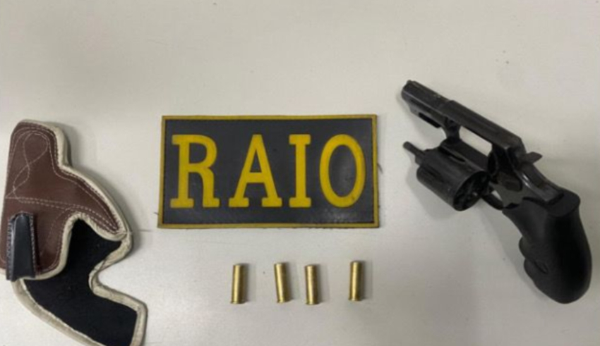 Ao chegarem, os policiais perceberam uma atitude suspeita: o indivíduo teria arremessado um objeto em um terreno baldio ao notar a aproximação da viatura. Após a abordagem e a varredura no local indicado, foi encontrado um revólver calibre 38, marca Taurus, com capacidade para cinco disparos. No local também foram constatadas quatro munições deflagradas.