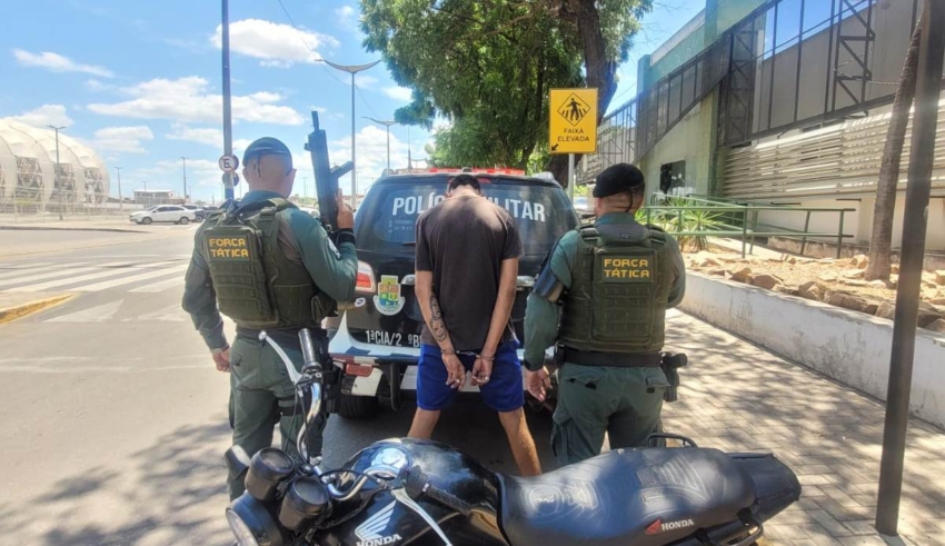 A moto foi localizada no bairro Bulandeira. Quando perceberam a presença da viatura, dois suspeitos abandonaram o veículo e correram em direção a uma residência. Um deles foi capturado, enquanto o segundo conseguiu escapar, mesmo após buscas realizadas na região.