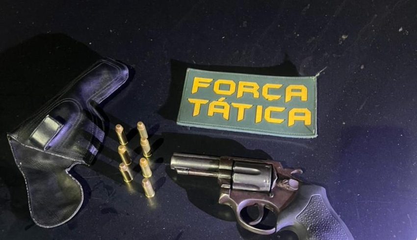 Dentro da casa, os militares encontraram um revólver calibre .38 acompanhado de oito munições intactas. O material foi reconhecido como pertencente ao homem abordado.