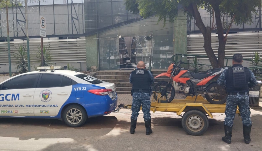 Segundo o relatório, os agentes identificaram uma motocicleta Honda Bros, cor laranja, placa OCO-2641, que estava encostada no canteiro central, em meio à vegetação, aparentando abandono. Após consulta ao sistema, foi constatado que o veículo possuía registro de roubo.