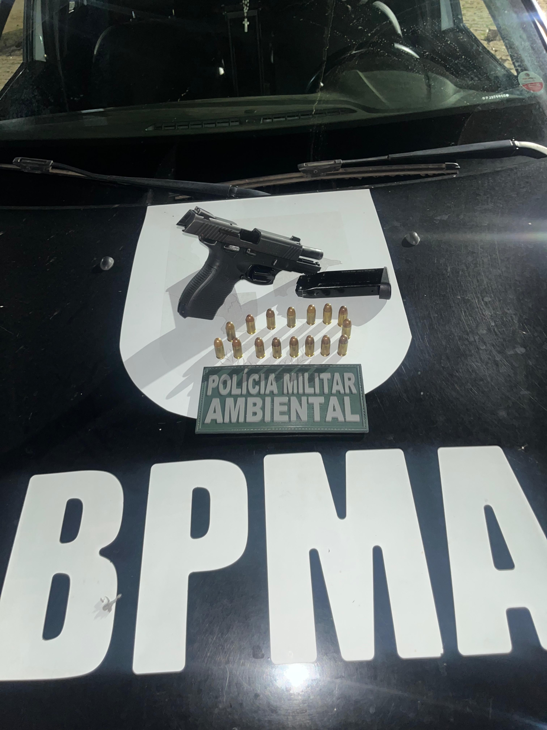 Após diligências, os policiais localizaram o acusado em um posto de combustíveis, nas proximidades do Parque Ecológico das Timbaúbas. Durante a abordagem, foi encontrada com ele uma pistola Taurus PT 845, calibre .45, de uso restrito, carregada com 16 munições, além de um segundo carregador.