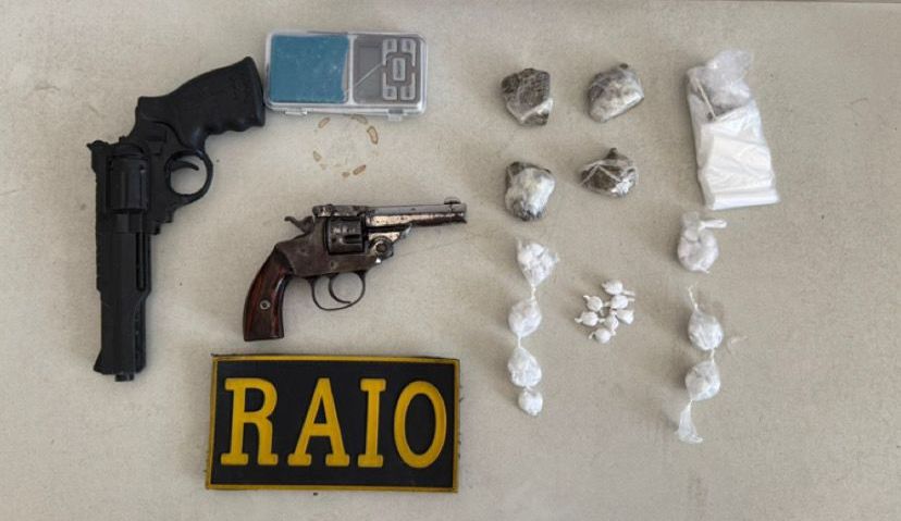 De acordo com a PM, após informações levantadas pelo setor de inteligência e por populares, os policiais chegaram ao imóvel onde o suspeito foi encontrado. Durante as buscas, foram apreendidos um revólver calibre .32 com munições, 40 pedras de cocaína (18,5 g), 39,5 g de maconha, uma balança de precisão, um simulacro de arma de fogo, 60 embalagens plásticas e R$ 140 em espécie.