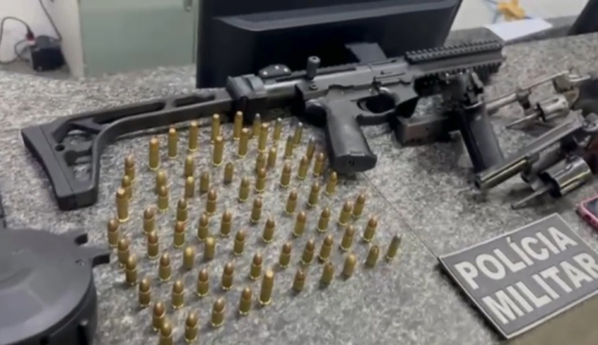 Durante as buscas, os policiais encontraram uma submetralhadora calibre 9 mm, dois revólveres — calibres .38 e .32 —, uma pistola .380 e 73 munições de diferentes calibres.