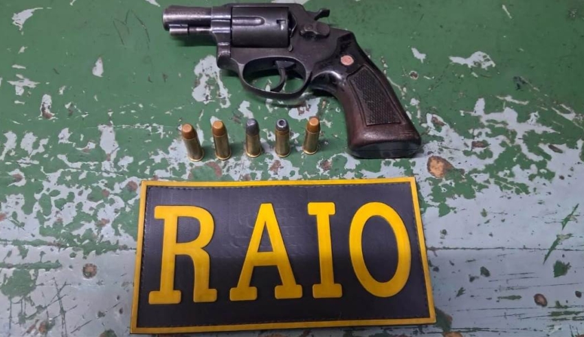 De acordo com a Polícia Militar, a equipe RAIO 02 visualizou dois indivíduos em atitude suspeita próximo a uma motocicleta Honda Bros, na entrada da localidade. Durante a abordagem, um dos suspeitos confessou portar uma arma de fogo na cintura. Com ele, foi apreendido um revólver calibre .38 da marca Rossi, com acabamento oxidado, capacidade para cinco disparos e numeração 788083, além de cinco munições intactas.
