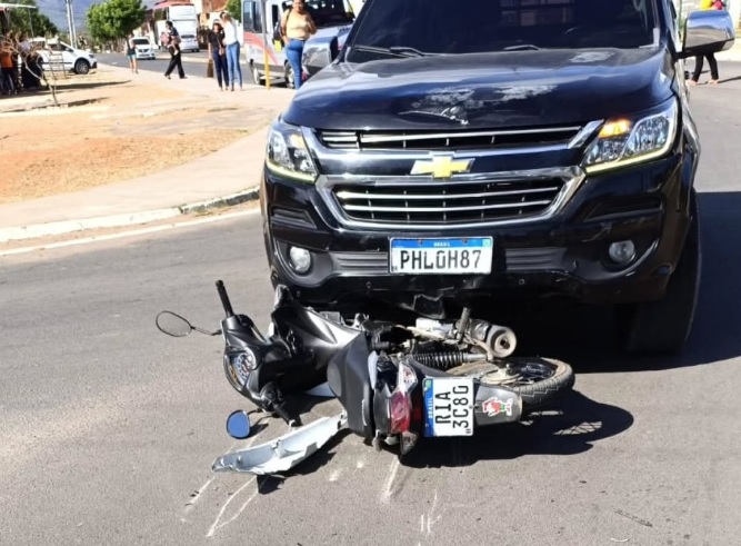 Uma colisão entre uma motocicleta e uma caminhonete S10 foi registrada na manhã desta segunda-feira na rotatória do Bairro Mirandão, em Crato. A motociclista, cuja identidade não foi informada, teve escoriações e recebeu atendimento das equipes do SAMU, sendo posteriormente levada ao hospital para cuidados médicos.