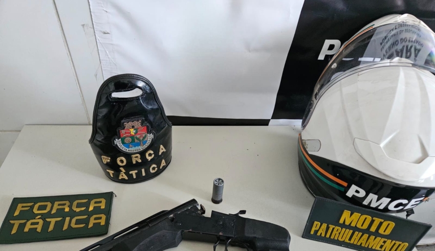 No local, os policiais constataram a veracidade da denúncia e localizaram uma espingarda calibre 12, que estava municiada, no interior do imóvel. O suspeito foi abordado e recebeu voz de prisão.