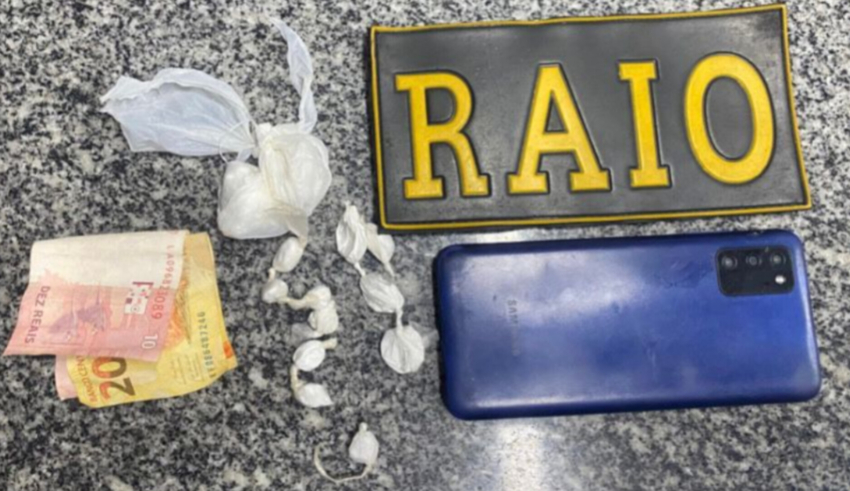 Ao entrar na residência, os policiais encontraram 15 gramas de cocaína divididas em porções, além de um celular e R$ 30,00. Um homem também estava na casa no momento da abordagem.