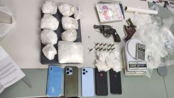 Durante a operação, um homem de 34 anos foi encontrado com 1,747 kg de cocaína, um revólver calibre 38 com a numeração raspada e dez munições intactas. Ele foi autuado em flagrante por tráfico de drogas e posse ilegal de arma de fogo, além de responder a um mandado de prisão preventiva.