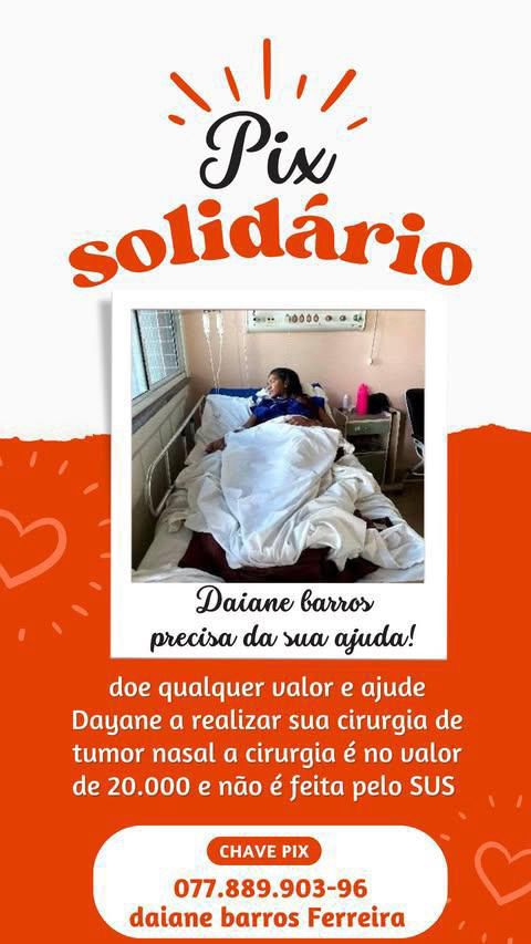 Diante da situação, Daiane pede ajuda da população e reforça o apelo às autoridades de saúde para que o caso receba a atenção necessária e urgente.