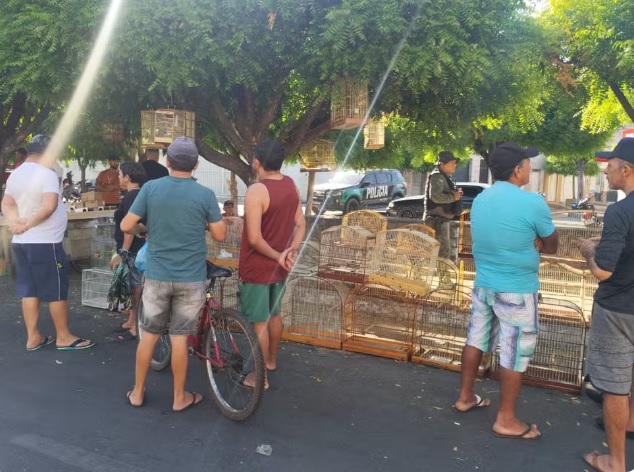 Na manhã deste domingo (12), a Polícia Ambiental realizou o resgate de 14 aves silvestres que estavam sendo mantidas em condições irregulares em Juazeiro do Norte, no Cariri cearense. A ação ocorreu durante operação na Feira dos Pássaros, localizada na Avenida Carlos Cruz, bairro Salesianos.