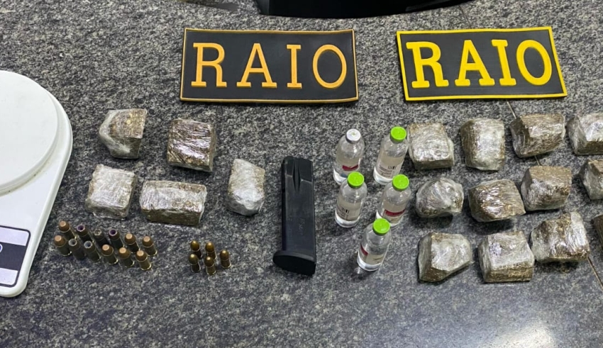 Durante a operação, foram encontrados, nos dois imóveis, 507 gramas de maconha, uma balança de precisão, embalagens plásticas, papel filme, um relógio dourado, cinco frascos de cloridrato de lidocaína, um carregador de pistola calibre .40, além de 12 munições calibre .40 e 5 munições calibre 9mm.