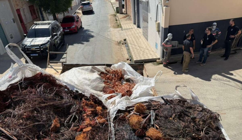 A Polícia Civil do Ceará apreendeu, nessa quinta-feira (11), mais de três toneladas de fios de cobre e cabos de alumínio em um estabelecimento de reciclagem em Juazeiro do Norte. O material, segundo a investigação, seria proveniente de furtos praticados contra empresas de energia e telefonia. Um homem foi detido durante a ação.