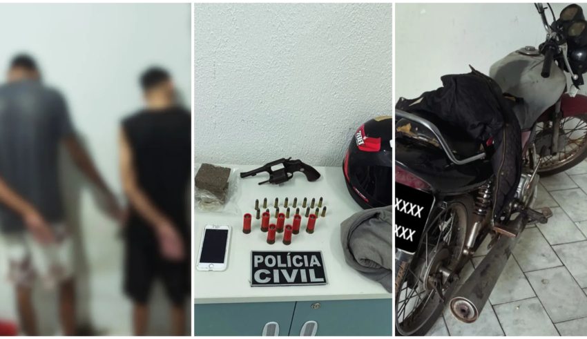 Durante a operação, os agentes localizaram os suspeitos em uma residência, onde também foram apreendidos uma arma de fogo, munições de diferentes calibres, entorpecentes, uma motocicleta e vestimentas possivelmente usadas na ação criminosa.