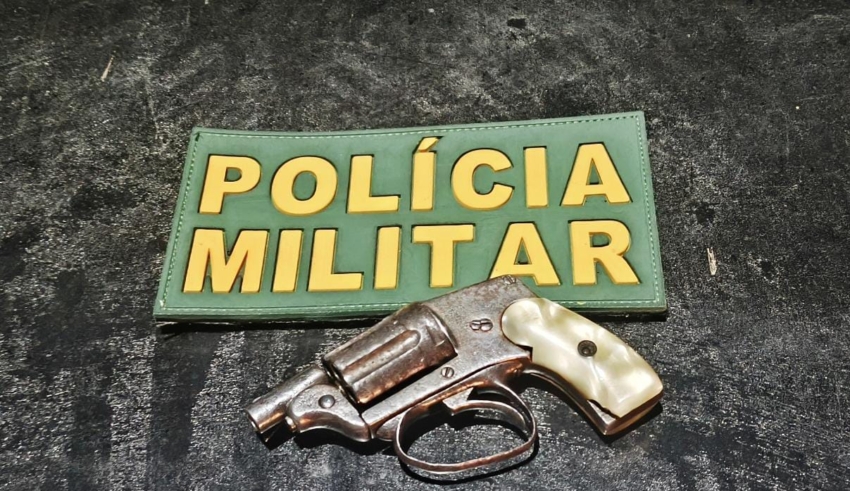 A arma apreendida foi encaminhada para a delegacia local para os procedimentos legais cabíveis.