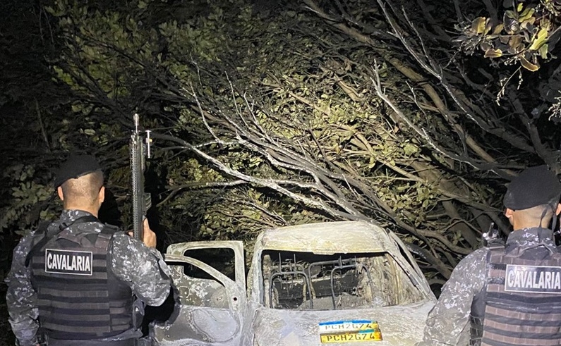 Os agentes realizavam patrulhamento no Sítio Barro Vermelho quando receberam informações de um popular sobre a presença de um veículo queimado próximo ao distrito do Caldas. Ao chegarem ao local indicado, os policiais encontraram um Fiat Mobi, ano 2017, branco, completamente incinerado.