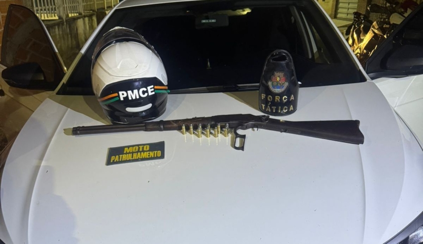 No endereço informado, os militares encontraram um VW Polo branco. Dentro do automóvel, havia um rifle calibre .44 e 11 munições, armamento classificado como de uso restrito.