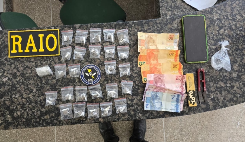 Durante a abordagem, os policiais encontraram 30 gramas de maconha misturada com haxixe e a quantia de R$ 117,00 em espécie, fracionada em diversas notas, o que reforça a suspeita de tráfico.