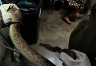 Jiboia arco-íris é resgatada de residência no bairro Logradouro, em Juazeiro do Norte