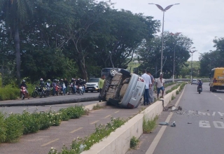 Carro colide com poste e causa transtornos na Avenida Leão Sampaio, entre Juazeiro do Norte e Barbalha