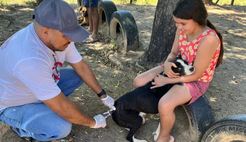 A vacinação é gratuita e visa prevenir a raiva, doença que pode ser transmitida de animais para humanos.