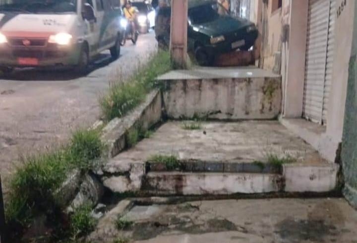 Um carro atingiu a estrutura de uma casa na noite de sexta-feira, em um trecho da Rua Coronel Luiz Teixeira, área central do Crato, nas proximidades do Arco.